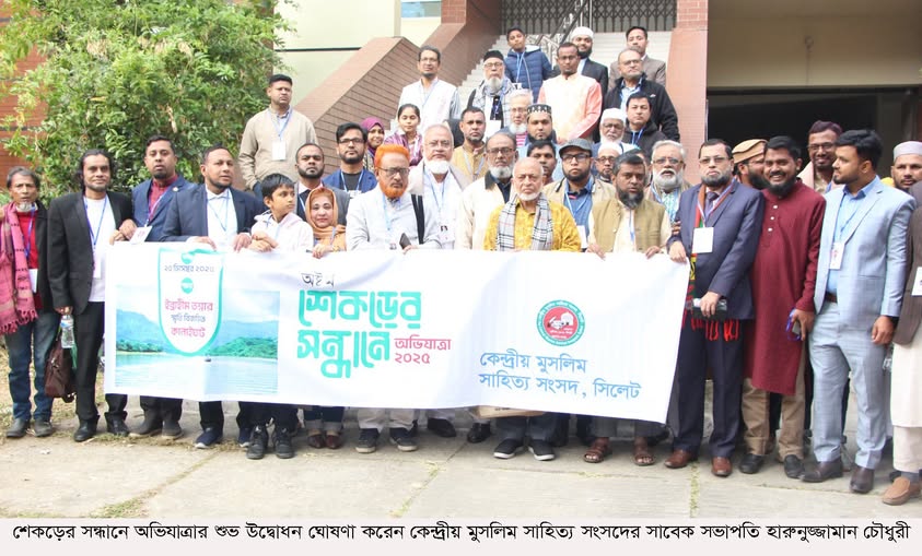 ঐতিহ্যবাহী সাহিত্য প্রতিষ্ঠান কেন্দ্রীয় মুসলিম সাহিত্য সংসদ, সিলেট-এর উদ্যোগে অষ্টমবারের মতো অনুষ্ঠিত হলো ‘শেকড়ের সন্ধানে অভিযাত্রা ২০২৫’। ২৫ ডিসেম্বর বৃহস্পতিবার সকালে সাহিত্য সংসদের পৃষ্ঠপোষক সদস্য, জীবনসদস্য ও সাহিত্যামোদী ১০১ জনের অভিযাত্রী নিয়ে সিলেট থেকে মরমি কবি ইবরাহিম আলী তশ্না (রহ.) ও বহু গুণীজনের স্মৃতিবিজড়িত জনপদ কানাইঘাট সফর করা হয়। সকালে সাহিত্য সংসদ প্রাঙ্গণে অভিযাত্রার উদ্বোধন করেন সংসদের সাবেক সভাপতি ও সিলেট প্রেসক্লাবের সাবেক সভাপতি হারুনুজ্জামান চৌধুরী।
