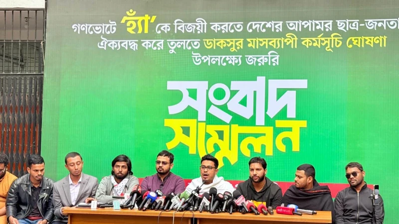 সংবাদ সম্মেলনে ডাকসুর পক্ষ থেকে জামায়াতে ইসলামী, বিএনপি, এনসিপি-সহ দেশের সকল ফ্যাসিবাদবিরোধী রাজনৈতিক দল, ছাত্রসংগঠন, পেশাজীবী সংগঠন, সুশীল সমাজ এবং আপামর ছাত্র-জনতাকে ঐক্যবদ্ধভাবে গণভোটে 'হ্যাঁ' ভোটের পক্ষে দেশব্যাপী গণজোয়ার সৃষ্টির উদাত্ত আহ্বান জানানো হয়।