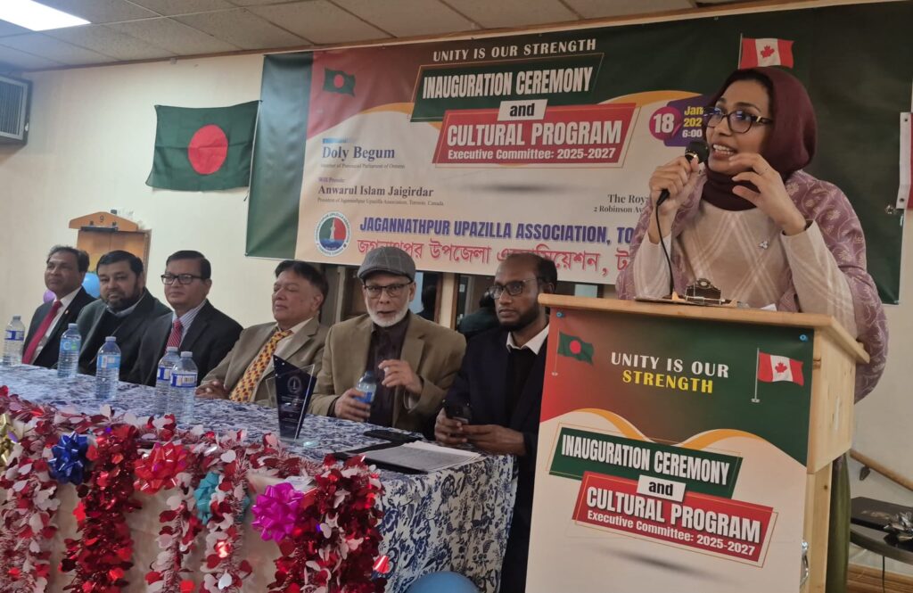 “একতাই আমাদের শক্তি ” এই স্লোগান নিয়ে নতুন যাত্রা কৱা জগন্নাথপুর উপজেলা এসোসিয়েশন টরন্টো কানাডাৱ অভিষেক সম্পন্ন হয়েছে। বর্ণাঢ্য আয়োজন বাংলাদেশী কমিউনিটির স্বতঃস্ফূর্ত ও প্রাণবন্ত উপস্থিতি ও আনন্দ ঘন পৱিবেশেৱ মধ্য দিয়ে অনুষ্ঠিত অভিষেক অনুষ্ঠানে অভিষিক্তৱা ভবিষ্যৎ কর্মপন্থা, ঐক্য, ভালোবাসা ও প্রবাসে থেকেও শেকড়ের প্রতি গভীর দায়বদ্ধতার অঙ্গীকার ব্যক্ত করেন ।