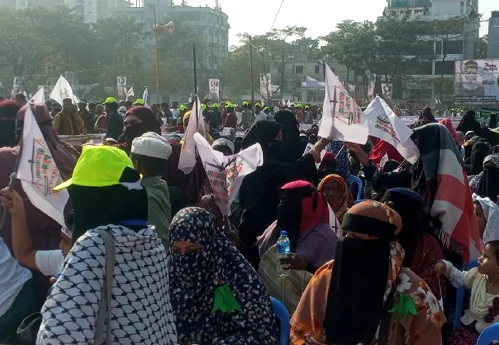 প্রথমবারের মতো সিলেটে জামায়াতের সমাবেশে অংশ নিয়েছেন নারীরা। যে দৃশ্য এর আগে কখনো দেখা যায়নি। এবারই প্রথম দলটির সমাবেশে প্রকাশ্যে অংশ নিলেন নারীরা। শনিবার বিকেলে সিলেট নগরের আলিয়া মাদ্রাসা মাঠে নির্বাচনী সমাবেশ করে জামায়াত ইসলামী। এতে প্রধান অতিথি হিসেবে বক্তব্য রাখেন দলটির আমির ডা. শফিকুর রহমান। এই সমাবেশে বিপুল সংখ্যক নারীরা অংশ নেন।