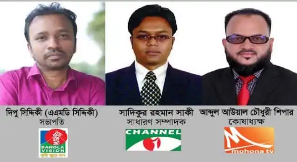 বাংলাভিশনের স্টাফ রিপোর্টার দিপু সিদ্দিকীকে সভাপতি ও চ্যানেল আই’র সিলেট প্রতিনিধি সাদিকুর রহমান সাকীকে সাধারণ সম্পাদক করে ১১ সদস্য বিশিষ্ট কমিটি ঘোষণা করেন সিনিয়র সাংবাদিক ও বাংলাদেশ বেতারের সিলেট জেলা সংবাদদাতা এম এ রহিম।