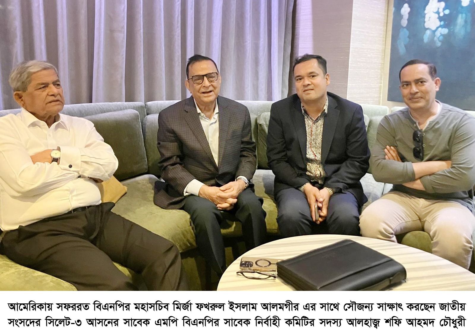 এ সময় তিনি বিএনপির মহাসচিবের শারীরিক অবস্থার খোজ খবর নেন। আলহাজ্ব শফী এ চৌধুরী জানান এটা মূলত সৌজন্য সাক্ষাৎ। দীর্ঘ দেড় যুগেরও বেশি সময় ধরে জেল জুলুম খেটে আন্দোলন সংগ্রাম করে বিএনপিকে এ পর্যন্ত নিয়ে আসার জন্য আলহাজ্ব শফী আহমদ চৌধুরী মহাসচিব এর প্রতি কৃতজ্ঞতা প্রকাশ করেন।