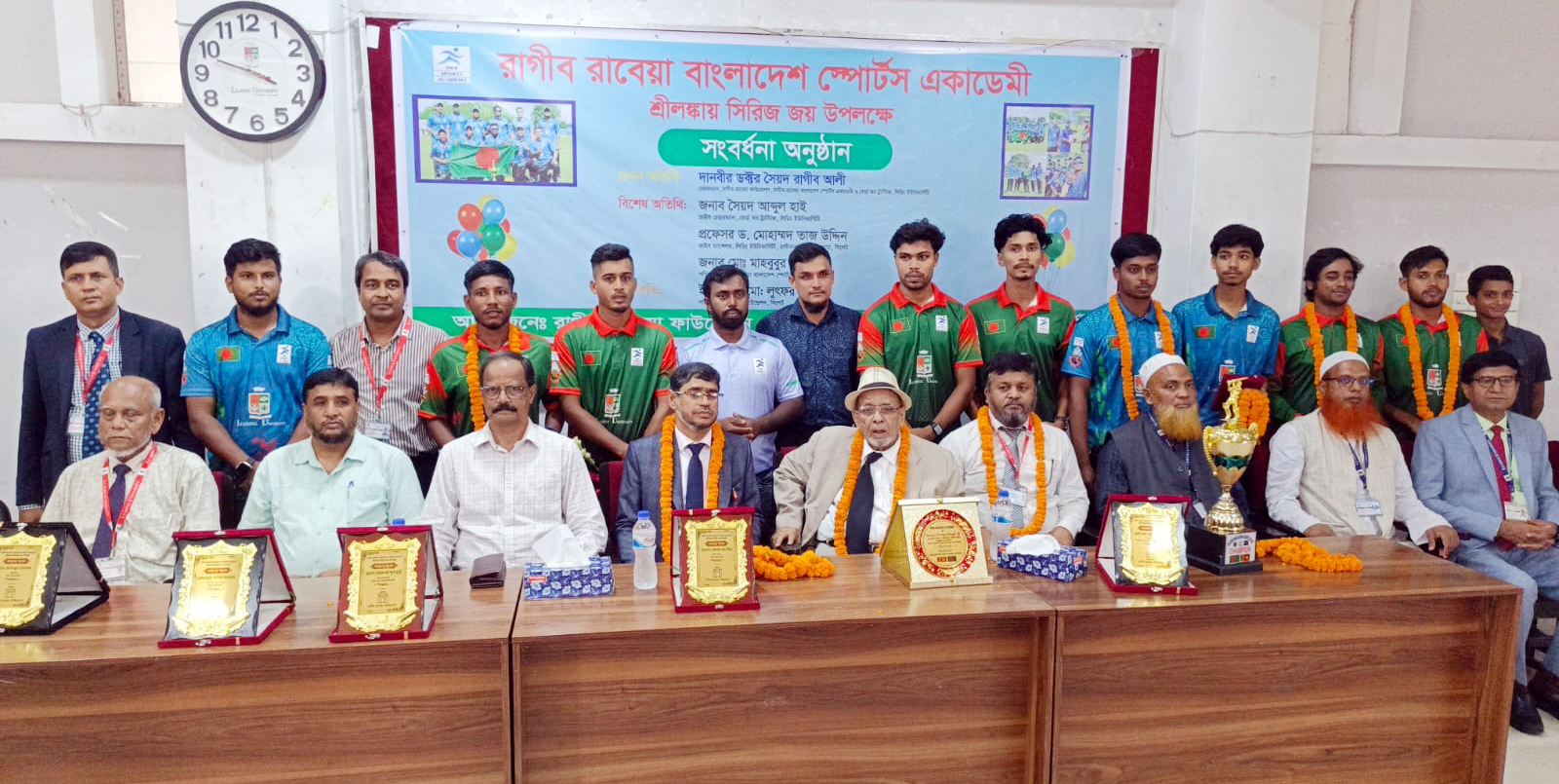 রাগীব-রাবেয়া বাংলাদেশ স্পোর্টস একাডেমির শ্রীলংকা সিরিজ জয় উপলক্ষে রোববার দুপুরে রাগীব নগরস্থ লিডিং ইউনিভার্সিটি ক্যাম্পাসে রাগীব-রাবেয়া ফাউন্ডেশন এক সংবাদ সম্মেলনের আয়োজন করে। এতে উপস্থিত ছিলেন সিলেটে প্রথম বেসরকারি বিশ্ববিদ্যালয় লিডিং ইউনিভার্সিটিসহ অসংখ্য শিক্ষা ও সমাজসেবামূলক প্রতিষ্ঠানের প্রতিষ্ঠাতা এবং চেয়ারম্য়ান দানবীর ড. রাগীব আলী।