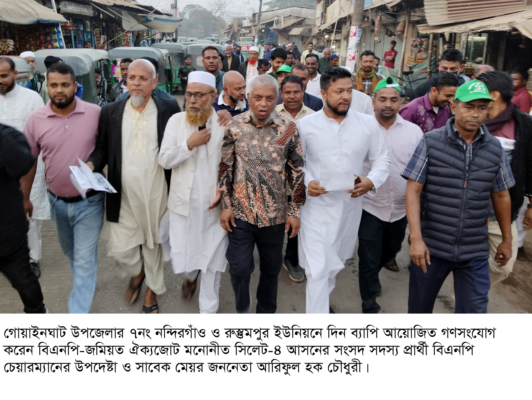 গোয়াইনঘাটে আরিফুল হক চৌধুরীর গণসংযোগ-সমাবেশ